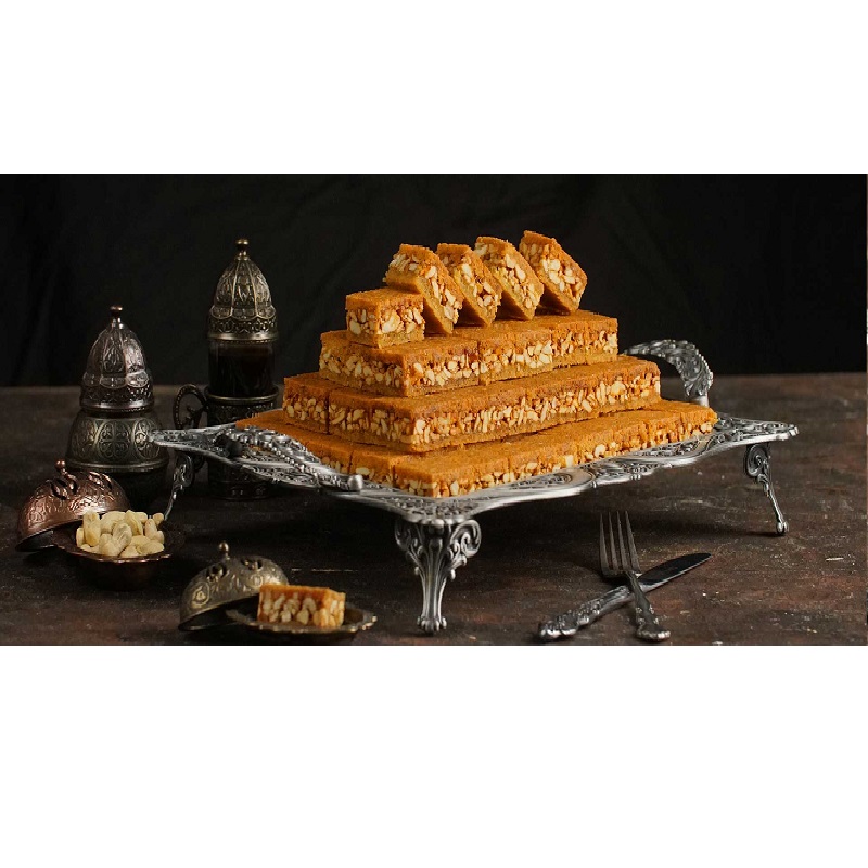 طبقتين من عجينة الكنافة محشوة بالكاجو المكسر المعطر