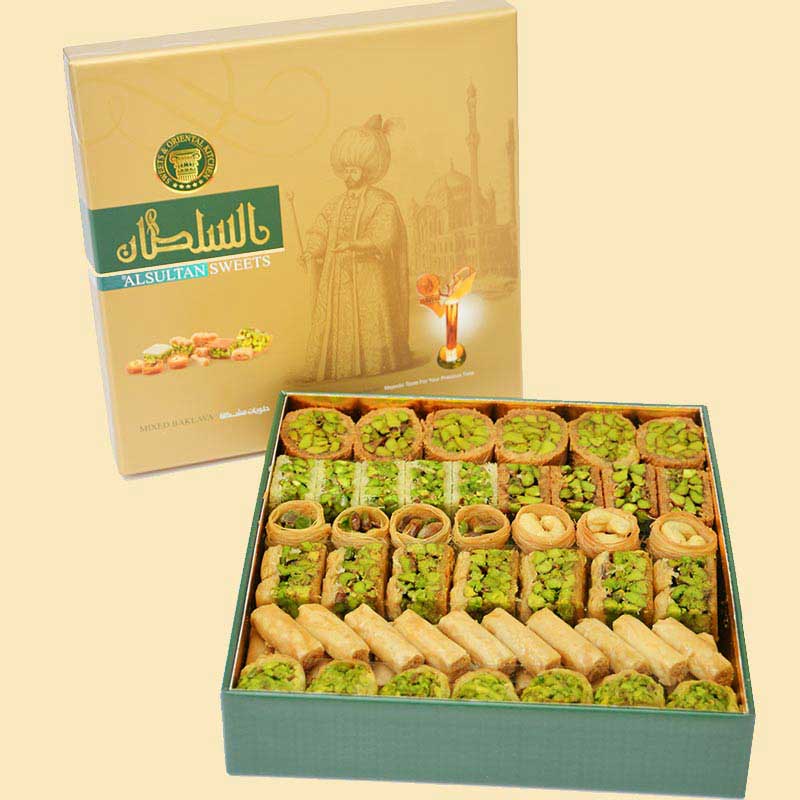 1750g 485.00 AEDAn Assorted Baklava; Pistachio Mabrouma, Pistachio Baklava, Pistachio